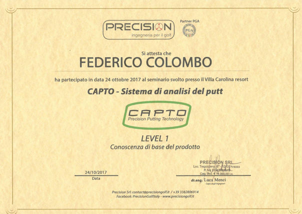 In questi anni mi sono specializzato nell'analisi del gioco corto grazie all'utilizzo di Capto putting technology e nell'analisi bioswing grazie alla tecnologia Smart2move e Trackman.